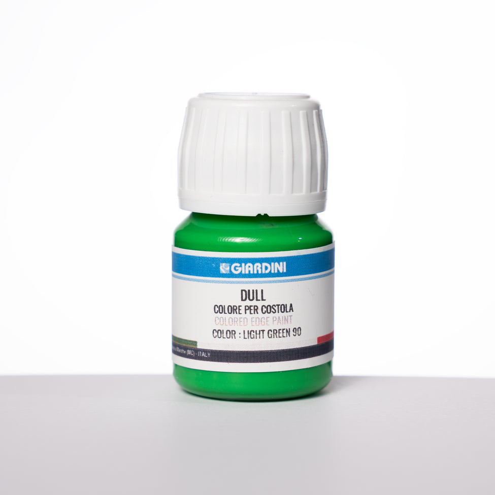 Giardini Dull Edge Paint Light Green 90 is the result of meticulous research and the use of the most advanced raw materials. This colored edge paint provides the perfect balance between our Basic and Dense edge paint, making it the ultimate choice for leather edging enthusiasts.