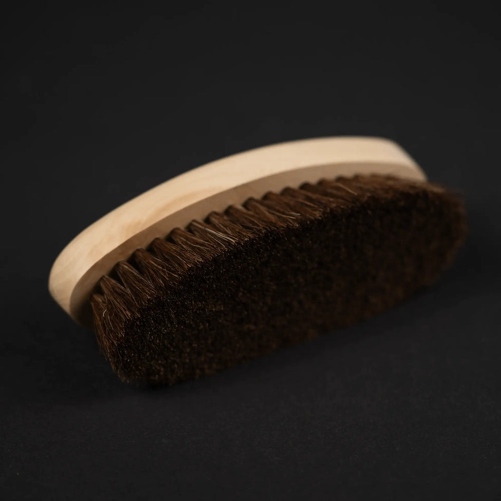 Made with authentic horsehair bristles, this brush provides gentle cleaning for suede, nubuck, and smooth leather. It is perfect for buffing and polishing while preserving seams and maintaining the material's quality.